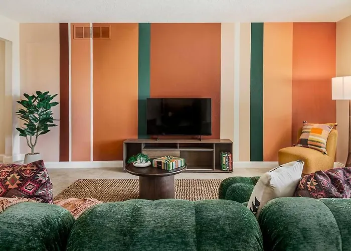 La villa Chic 5 Bed Rooms Boho Retreat With - Games & Outdoor Movies! cuenta con una cocina bien equipada para cocinar y pone a tu disposición nevera, horno y menaje de cocina. Los huéspedes pueden cenar en el restaurante India Grill, situado al alcance de la villa. Los huéspedes también pueden llegar a la villa Chic 5 Bed Rooms Boho Retreat With - Games & Outdoor Movies! en coche desde el aeropuerto Internacional Sunport en 22 minutos.
